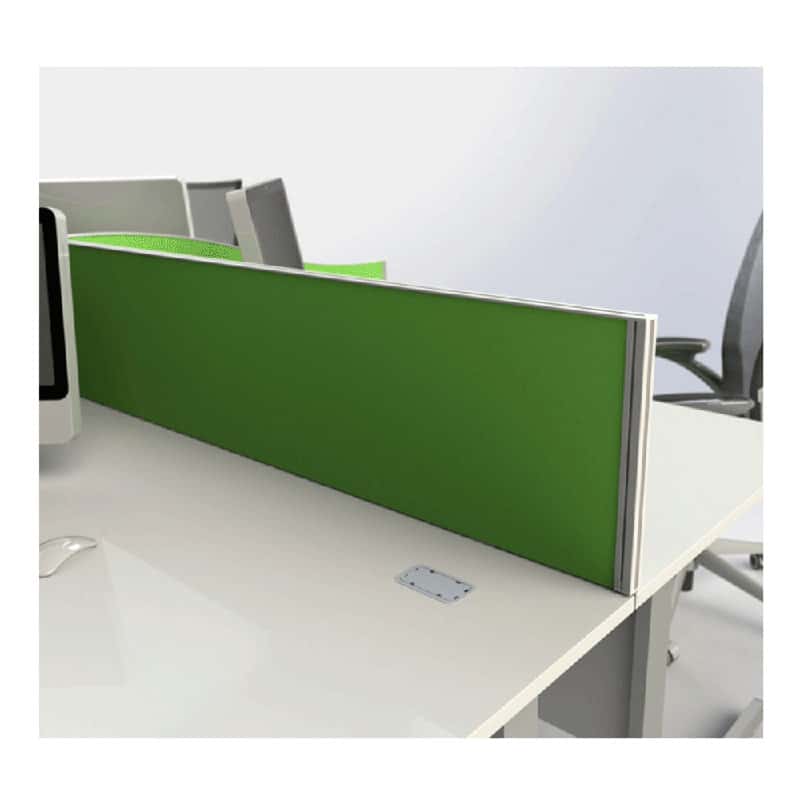 Aluminium framed desk top screen in a group 1 fabric (Camira Cara).