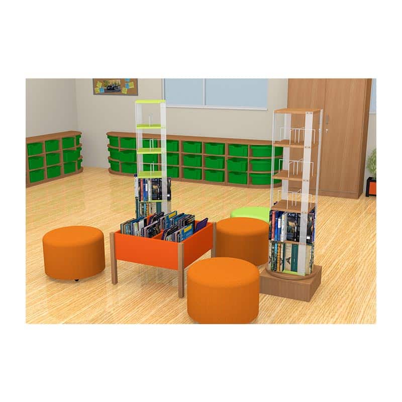 - Smaller version of adult paperback tower holds 125 books or 60 videos