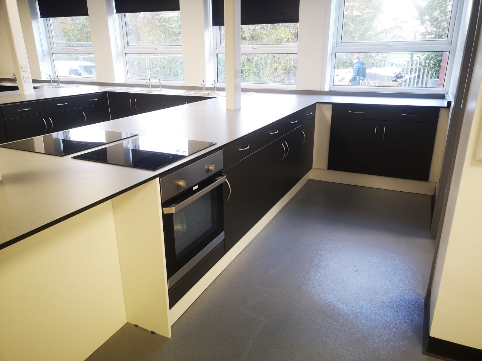 We provide a start-to-finish service from design (which can include items such as air extraction, appliances, LED lighting and safety flooring) through to completion.