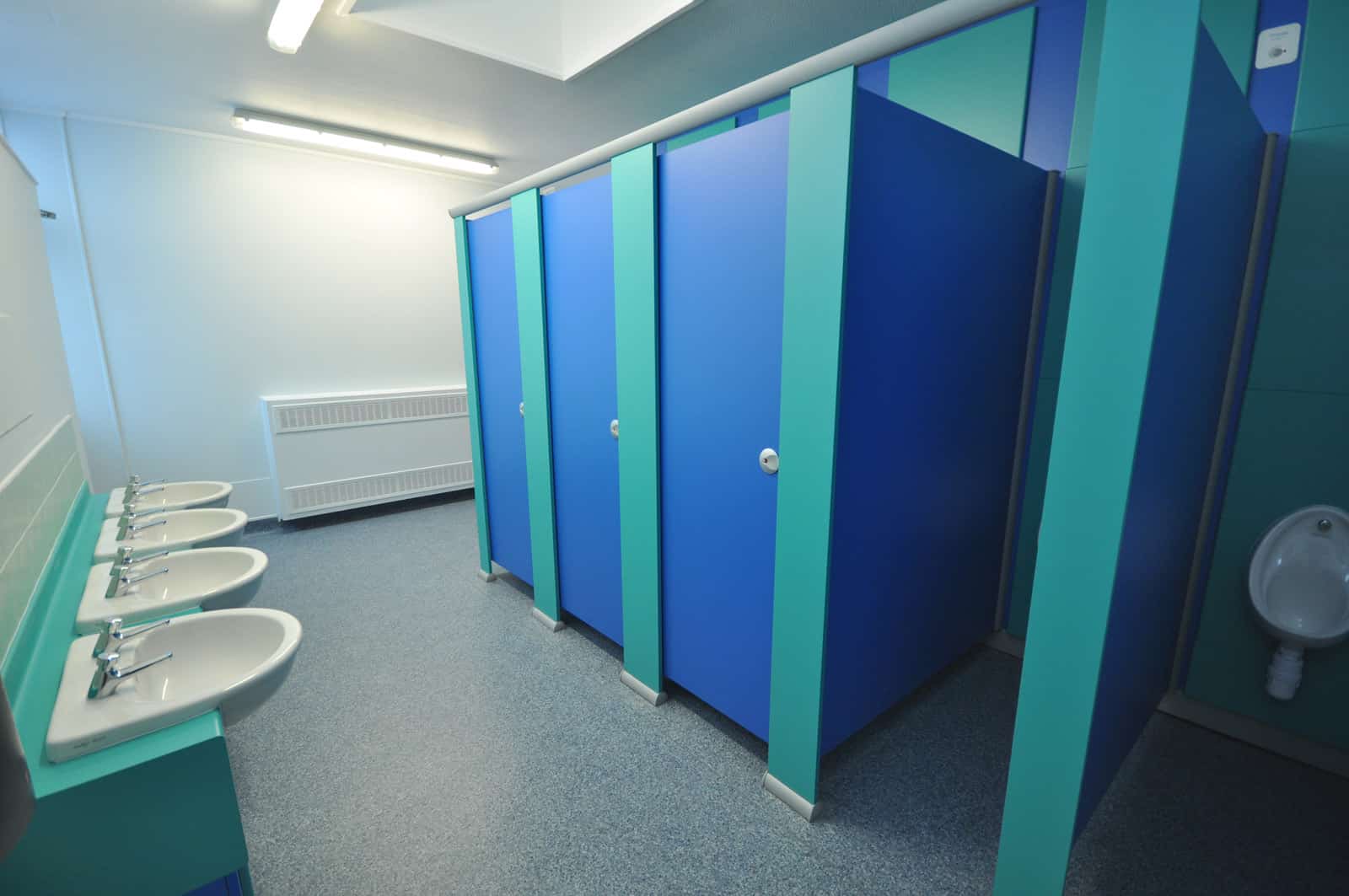 We can help improve the visibility of certain washroom areas to make them easier to supervise and help make the area quicker and easier to clean by installing hygienic wall cladding and seamless flooring.