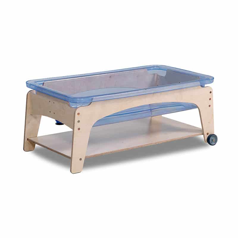 • Suitable for 2 years+ • Sturdy frame with two wheels and two fixed legs • Polycarbonate tray for sand or water • Suitable for use with canopy & Accessory Kit (YCRT0199) W1100 x D620 x H440mm