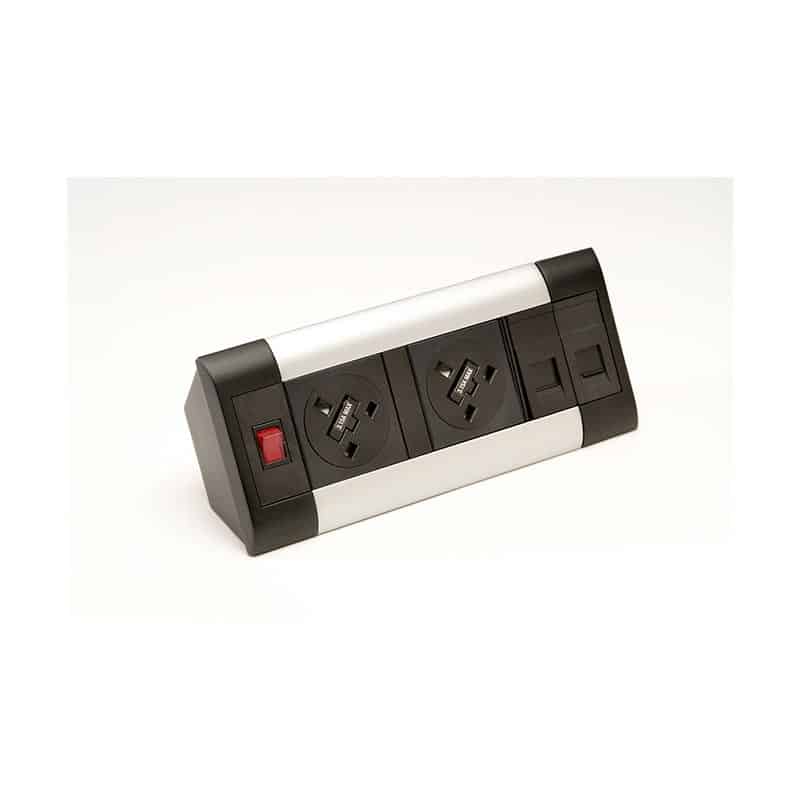 Supplied with desk fittings, 300mm lead to 3 pole connector & spare fuse per socket.